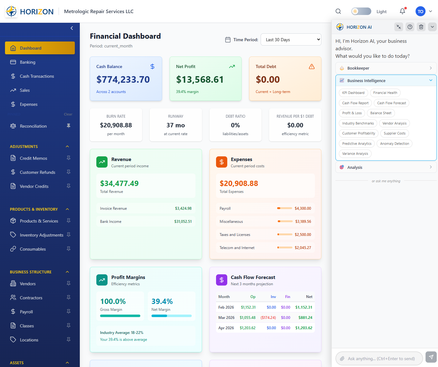 The complete business management platform with AI at its core. It will manage your finances, balance your books, analyze your competition, and unlock intelligence that drives growth. Learn More
